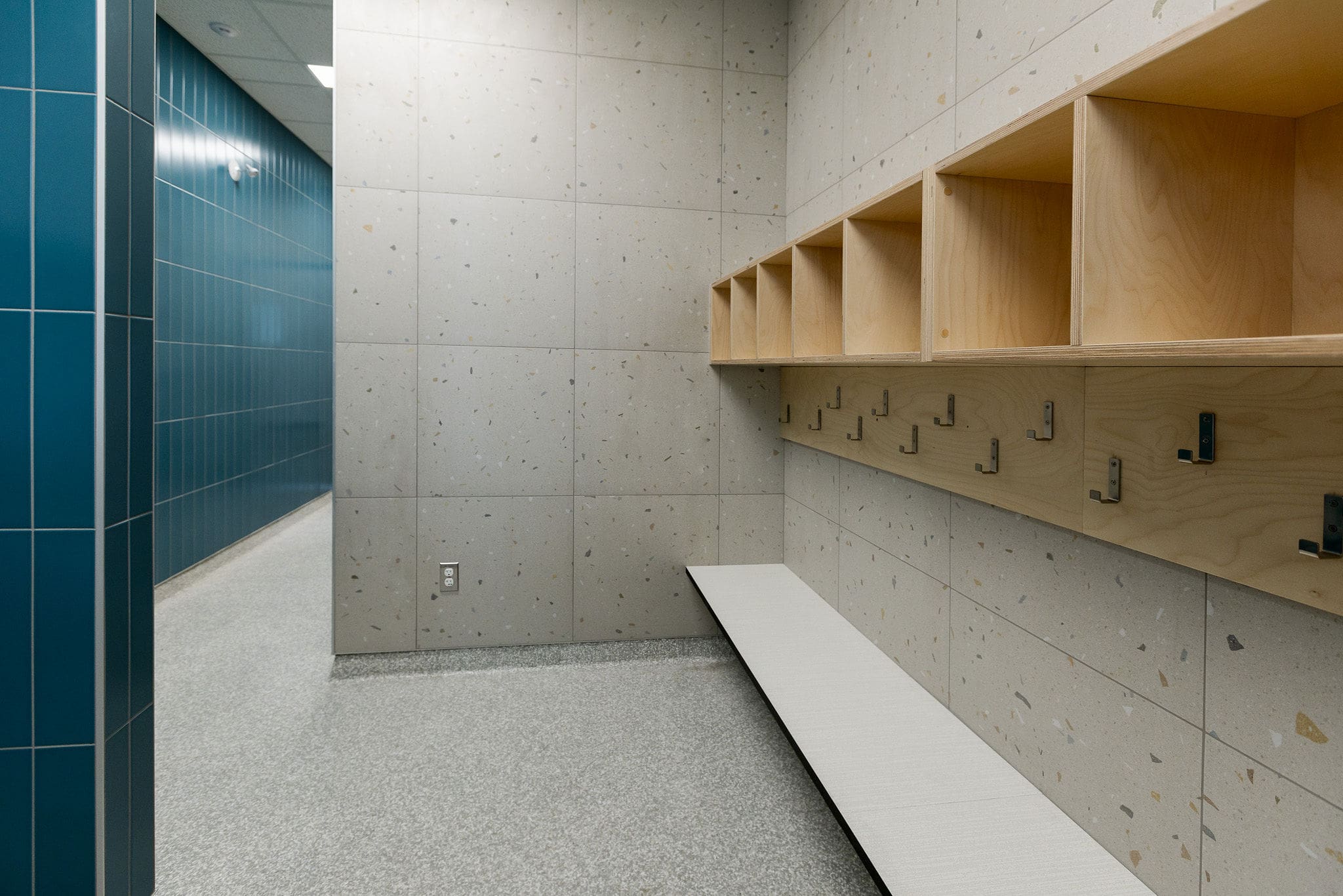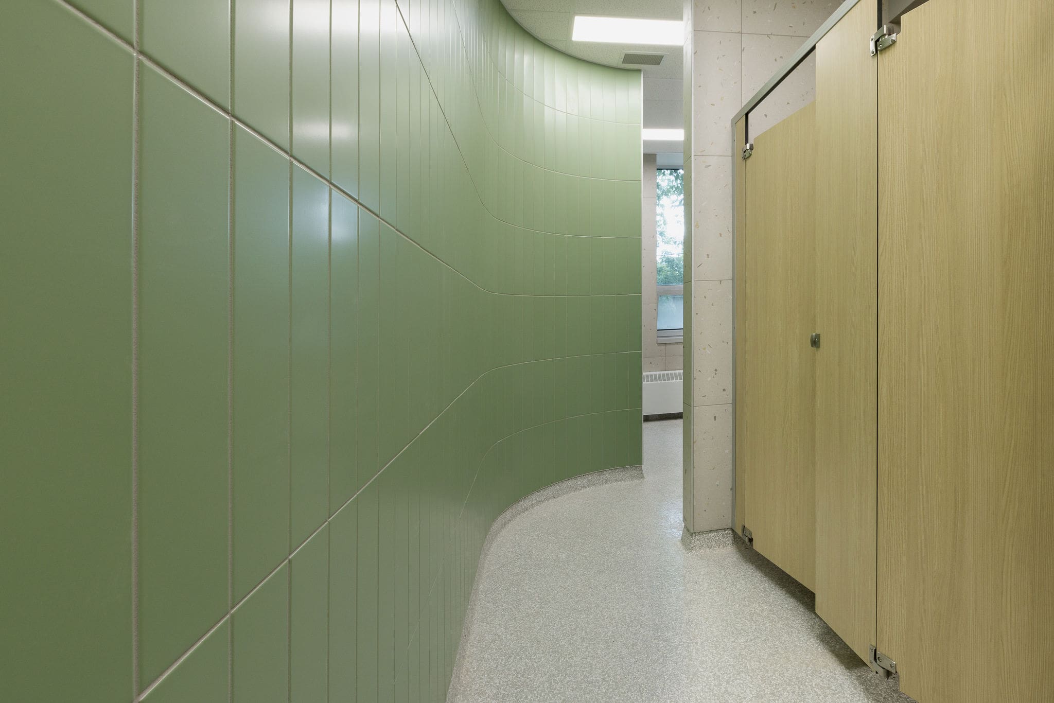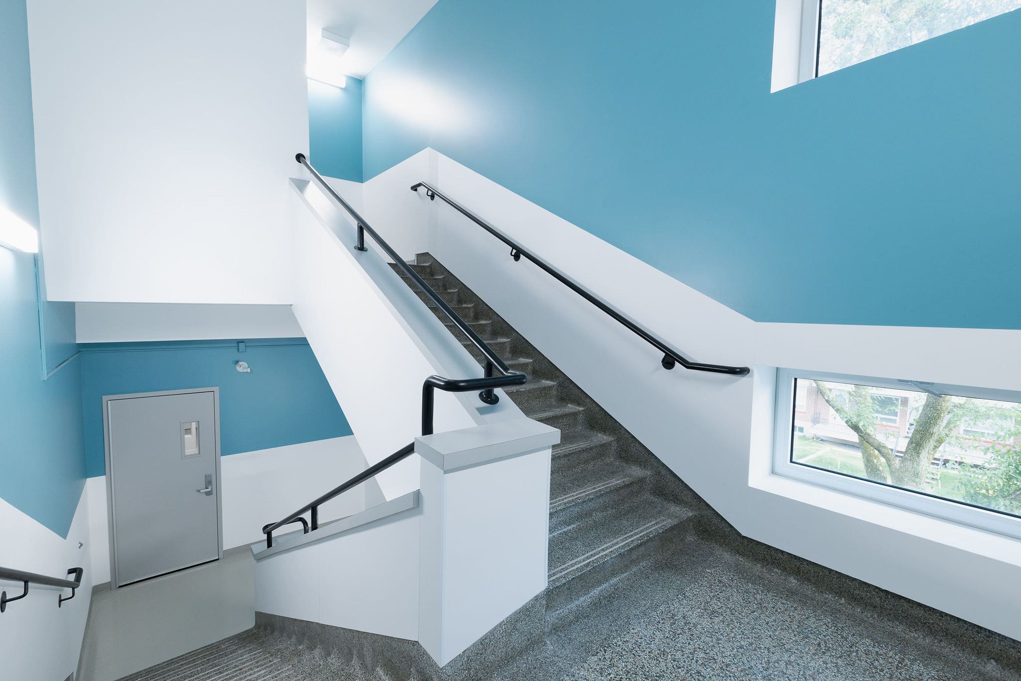 Le projet consistait en un réaménagement complet de 960 m² répartis sur trois étages, visant à transformer un secteur administratif et de formation en une école primaire moderne, annexée à l’établissement St-Albert-le-Grand. L’objectif principal était de maximiser la capacité d’accueil en salles de classe. Le concept retenu propose ainsi 9 classes lumineuses, une classe de musique, une petite bibliothèque, un mini-gymnase, un secrétariat, une salle du personnel enseignant, des bureaux de professionnels ainsi que des vestiaires et sanitaires à chaque étage. Comme le bâtiment avait déjà fait l’objet de rénovations en 2019, une attention particulière a été portée à la conservation et à la réutilisation des finis et équipements en bon état. Le résultat : des espaces scolaires adaptés, fonctionnels et durables, pensés pour accompagner la communauté éducative dans le temps.