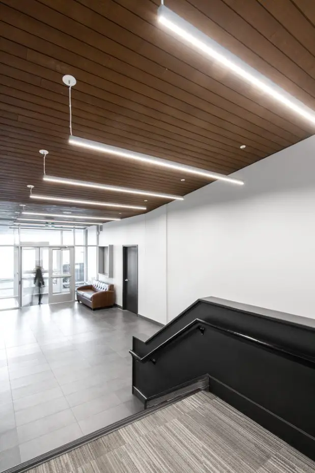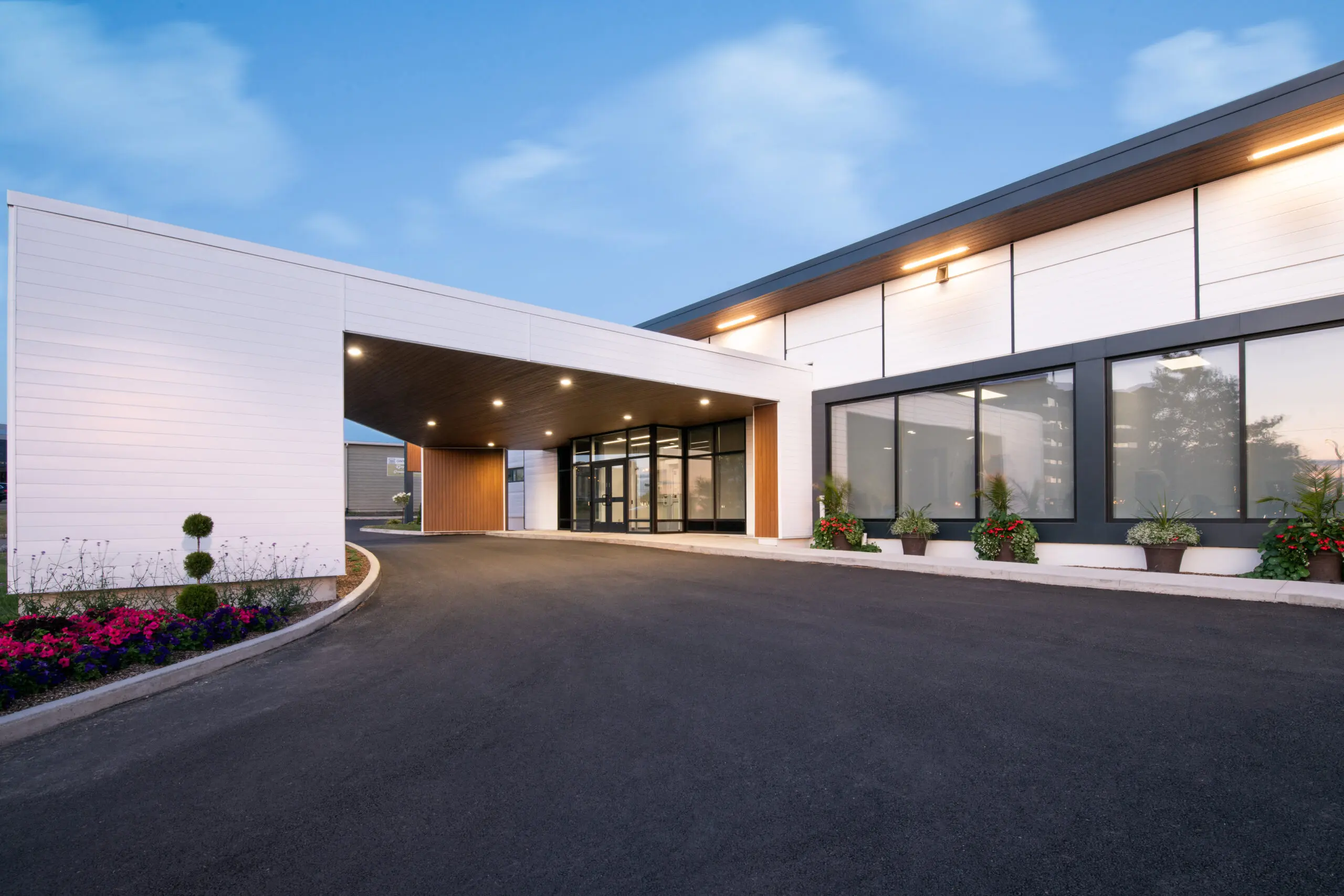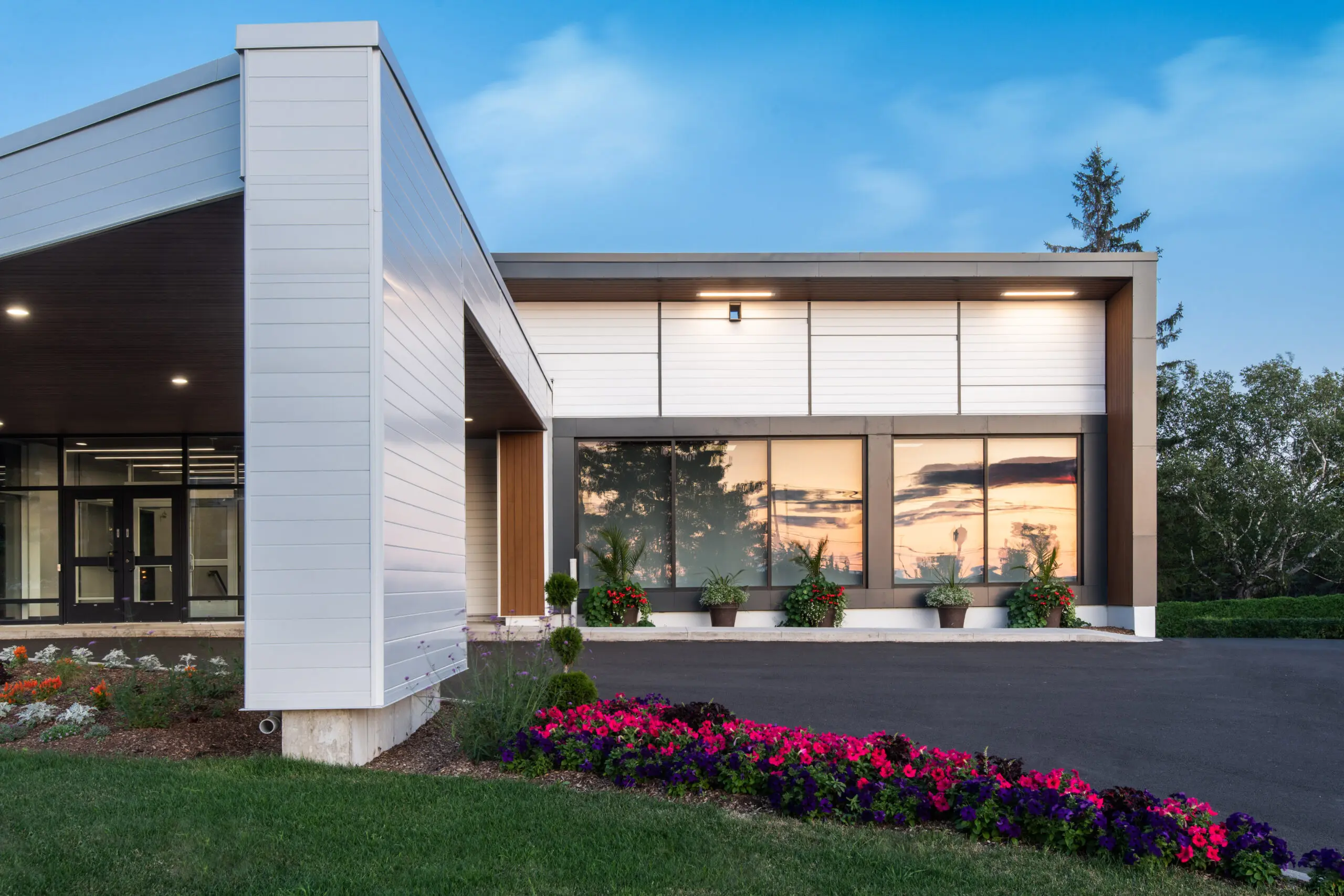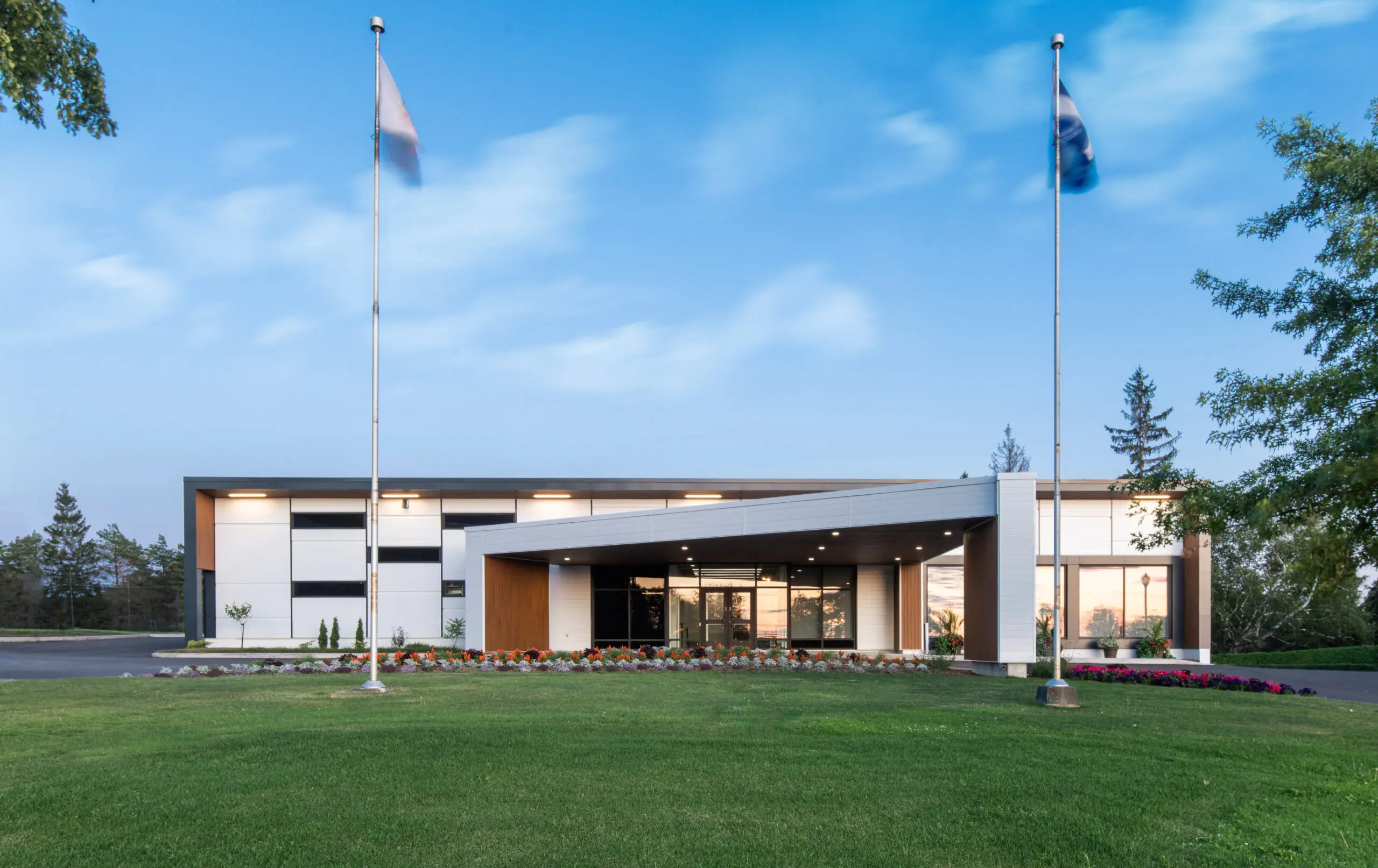 En vue d’offrir une nouvelle expérience d’accueil aux golfeurs, la conception mise sur un nouveau préau dont la forme contemporaine offre une toute nouvelle visibilité à l’institution. L’utilisation d’un revêtement de bois sous la marquise participe à cet accueil en invitant le golfeur dans un tout nouveau hall intérieur bordé par de nouveaux espaces administratifs lumineux. Le design des façades a été modulé en tenant compte du plan d’implantation et d’intégration architectural propre au secteur, tout en s’inspirant grandement des facettes du terrain de golf avec ses arbres matures. Le Club de Golf de Lévis innove avec la réfection des finis du bloc sanitaire et des douches de ses vestiaires. Les tons neutres, terreux et boisés ont été soigneusement choisis pour accompagner la vision pérenne du Golf de Lévis, soit d'offrir une expérience contemporaine à la hauteur de la qualité du terrain pour ses golfeurs et golfeuses.