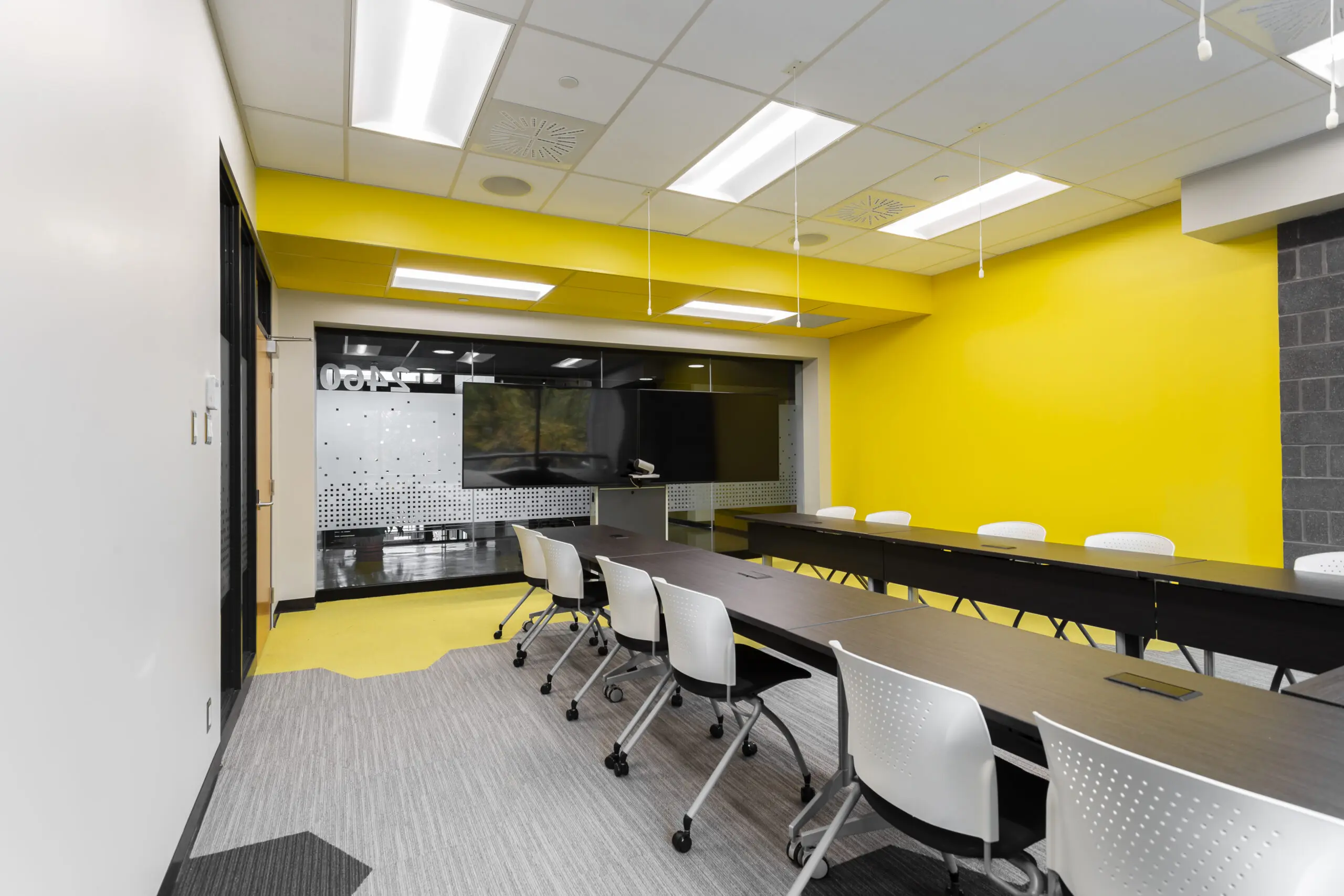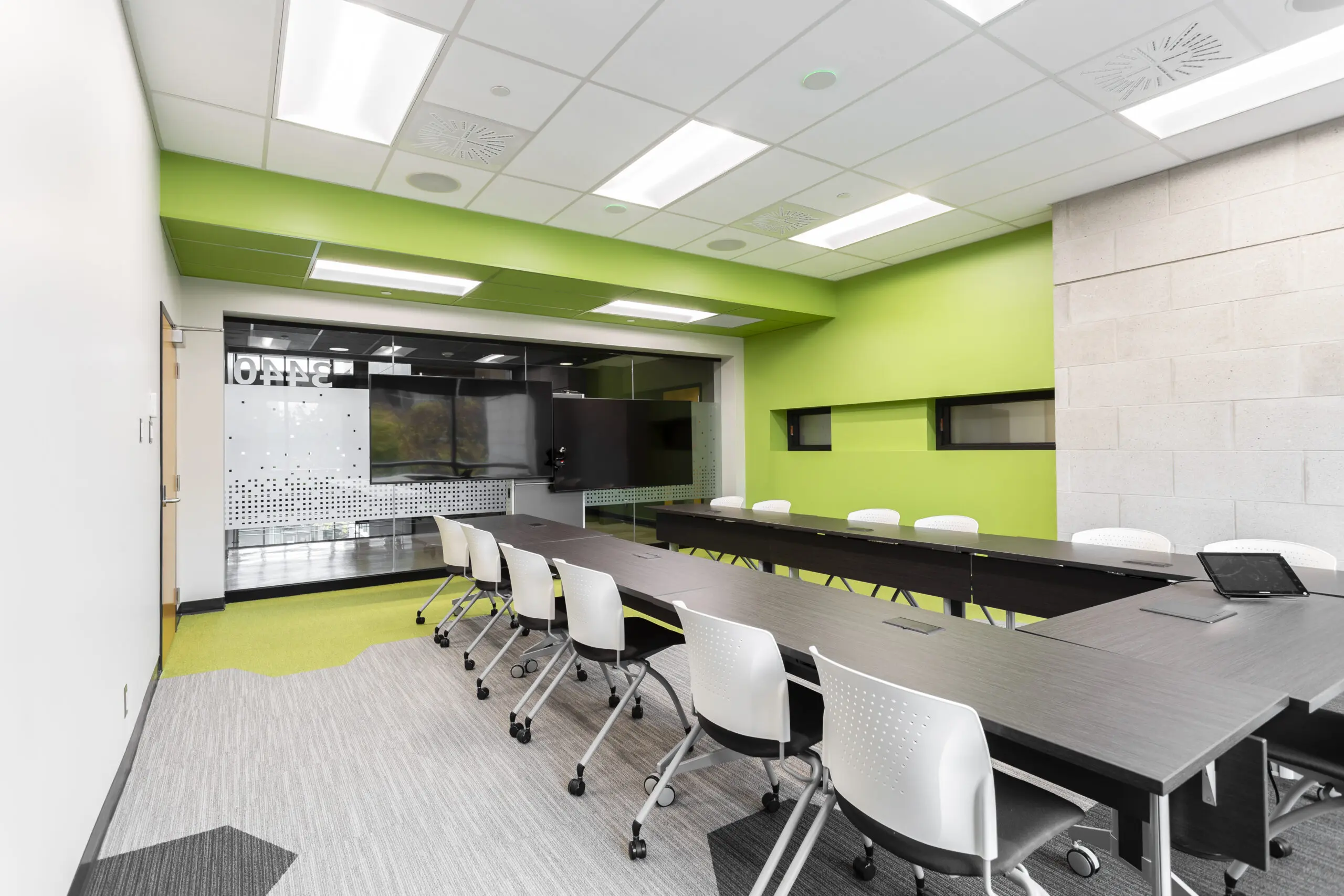 Ambitieux projet d’ajout d’éléments structuraux dans un espace restreint et occupé de l’un des atriums de l’Université TÉLUQ, qui a demandé une étroite collaboration avec l’ingénieur en structure. Résultat : cinq nouvelles salles de conférence maximisant l’apport lumineux ayant chacune sa couleur unique afin de mieux les dissocier et dynamiser les lieux.